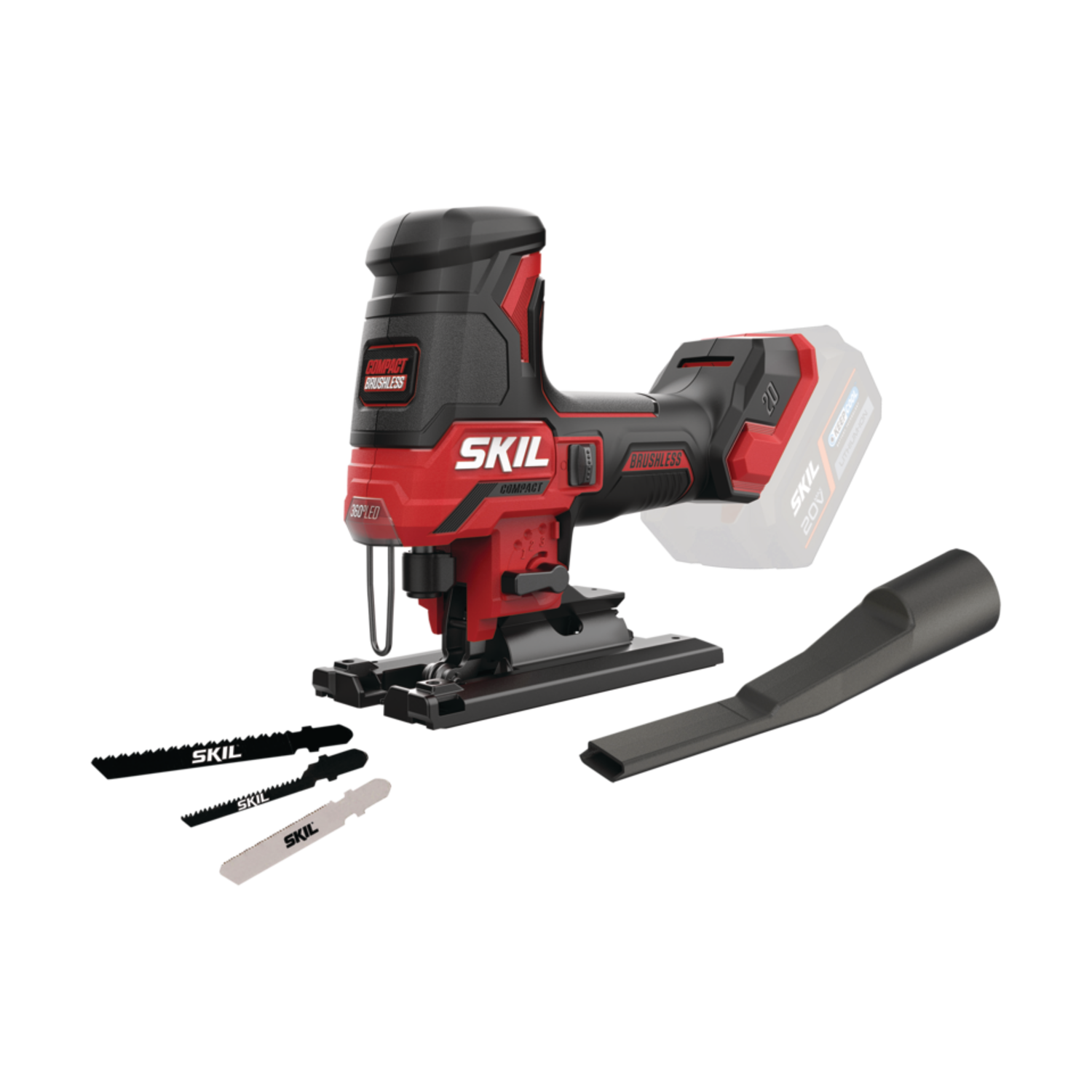 ΕΞΑΙΡΕΤΙΚΗ ΟΡΑΤΟΤΗΤΑ ΜΕ ΦΩΣ LED 360° Κινητήρας χωρίς ψήκτρες: Γρηγορότερος, ισχυρότερος και με 10 φορές μεγαλύτερη διάρκειας ζωής Mεταβολή ταχύτητας και ταλάντωσης για υψηλής ακρίβειας κοπές σε διάφορα υλικά Εύκολη εξαγωγή της καυτής πριονόλαμας με ένα κουμπί Ρυθμιζόμενη γωνία βάσης χωρίς κλειδί μέχρι και 45° αριστερά ή δεξιά για ακριβείς λοξές κοπές Συμπαγής, ελαφρύς σχεδιασμός για ιδανικό έλεγχο και οδήγηση Ιδανικός φωτισμός LED 360°, που φωτίζει τη γραμμή κοπής χωρίς σκιές